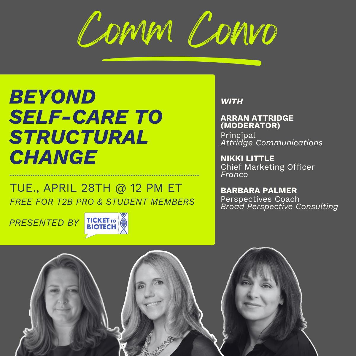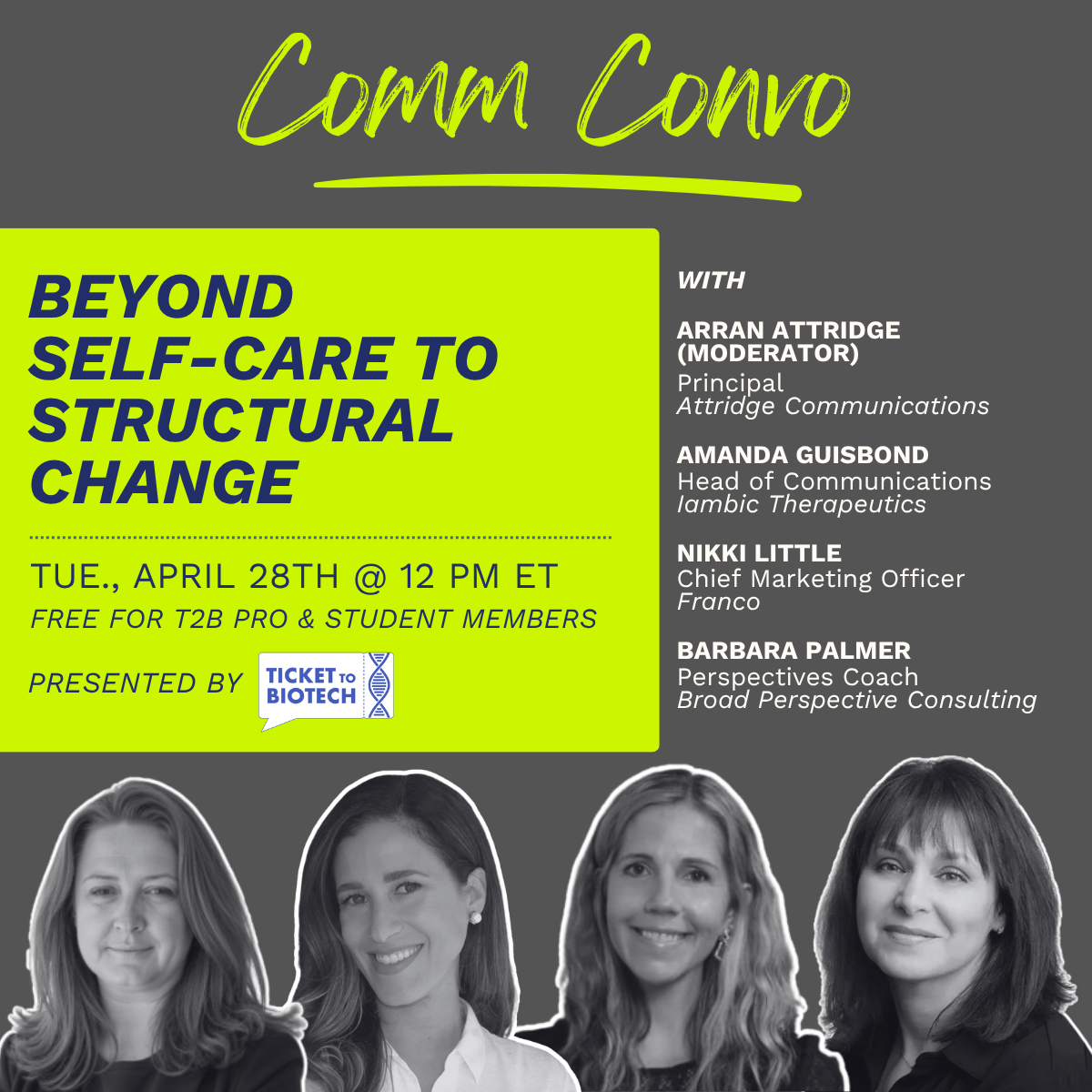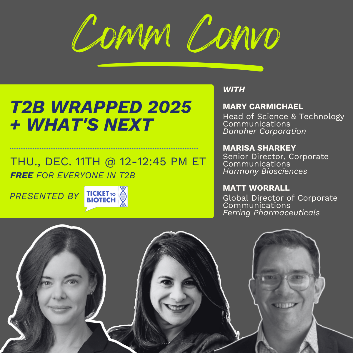 Ticket to Biotech (T2B) elevates our impact through purposeful relationships and shared experiences. Together we’re shaping the global life science narrative.
